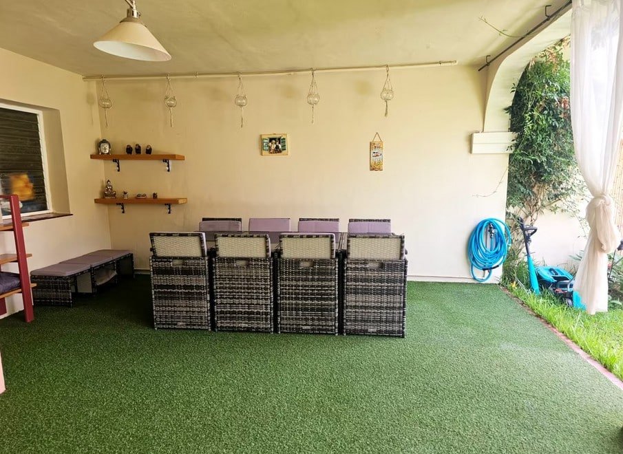 - Alimmassa kerroksessa on suuri puutarha grillipaikalla, ihanteellinen perheen tai ystävien kokoontumisiin.