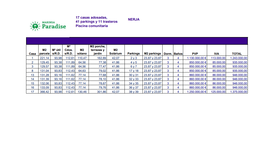 Tule tutustumaan Marinsan uuteen hankkeeseen: 17 kolmen makuuhuoneen rivitaloasuntoa Nerjassa.