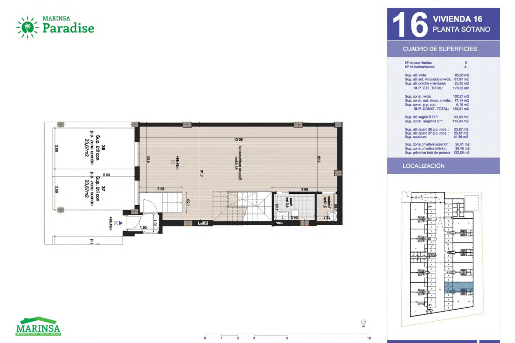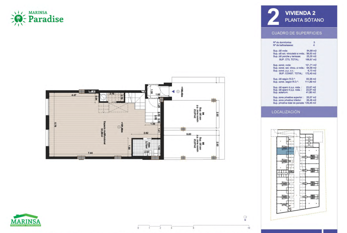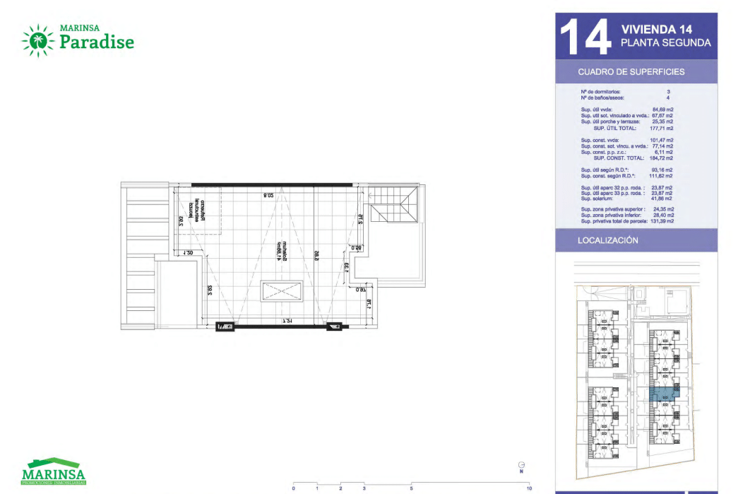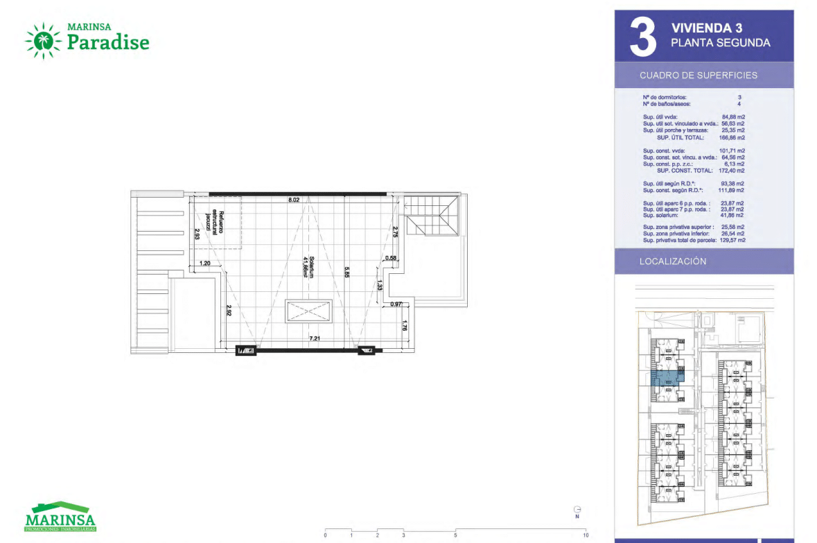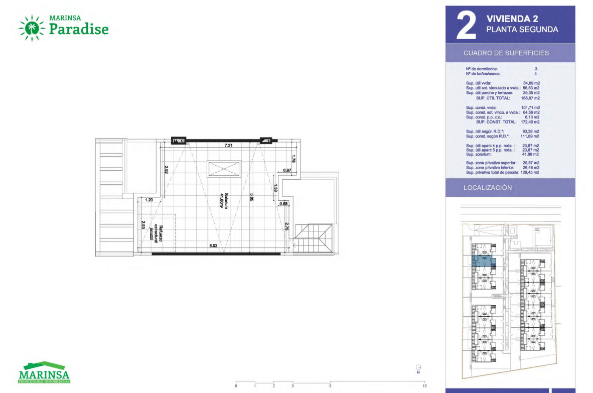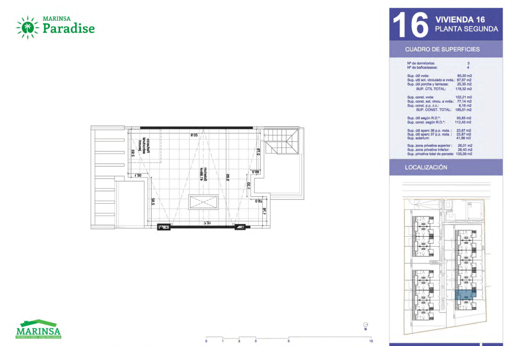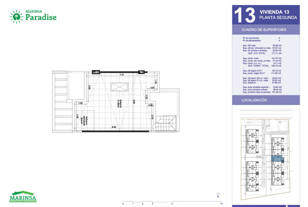 Marinsa Paradise on asuinkokonaisuus, joka koostuu kolmitasoisista asunnoista (alakerta, ensimmäinen ja toinen kerros), kellarikerroksesta sekä kattoterassista (solarium).
