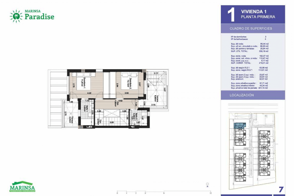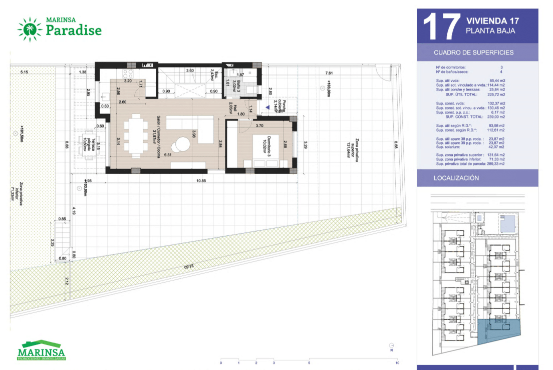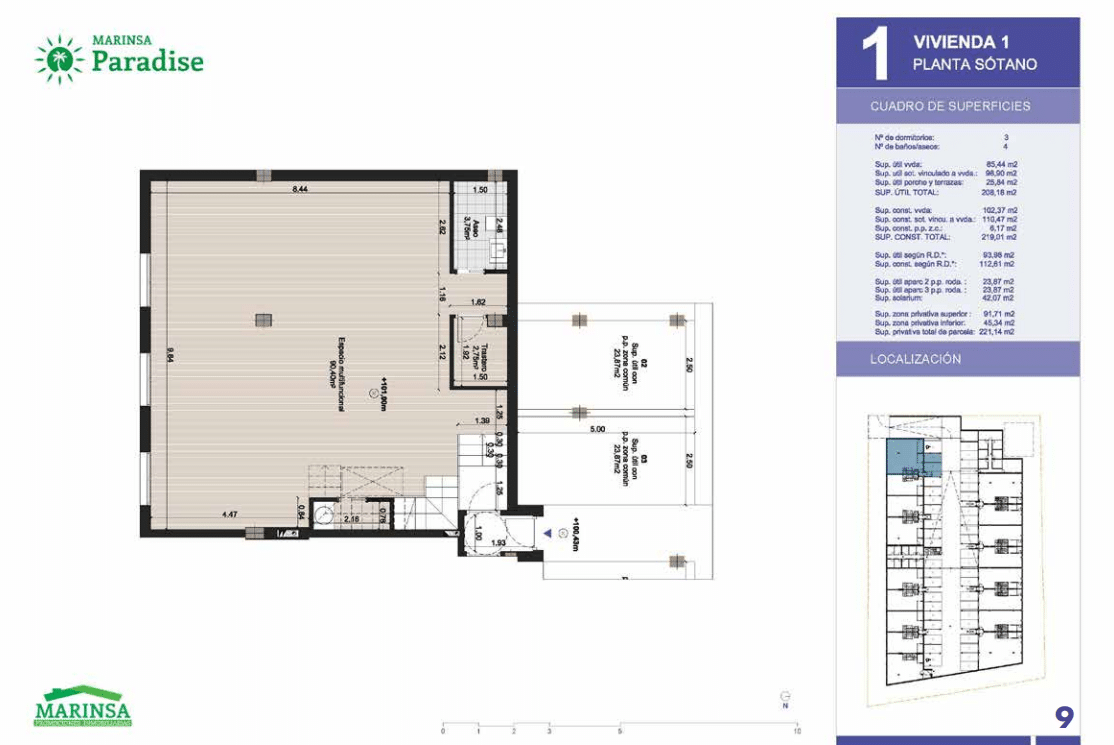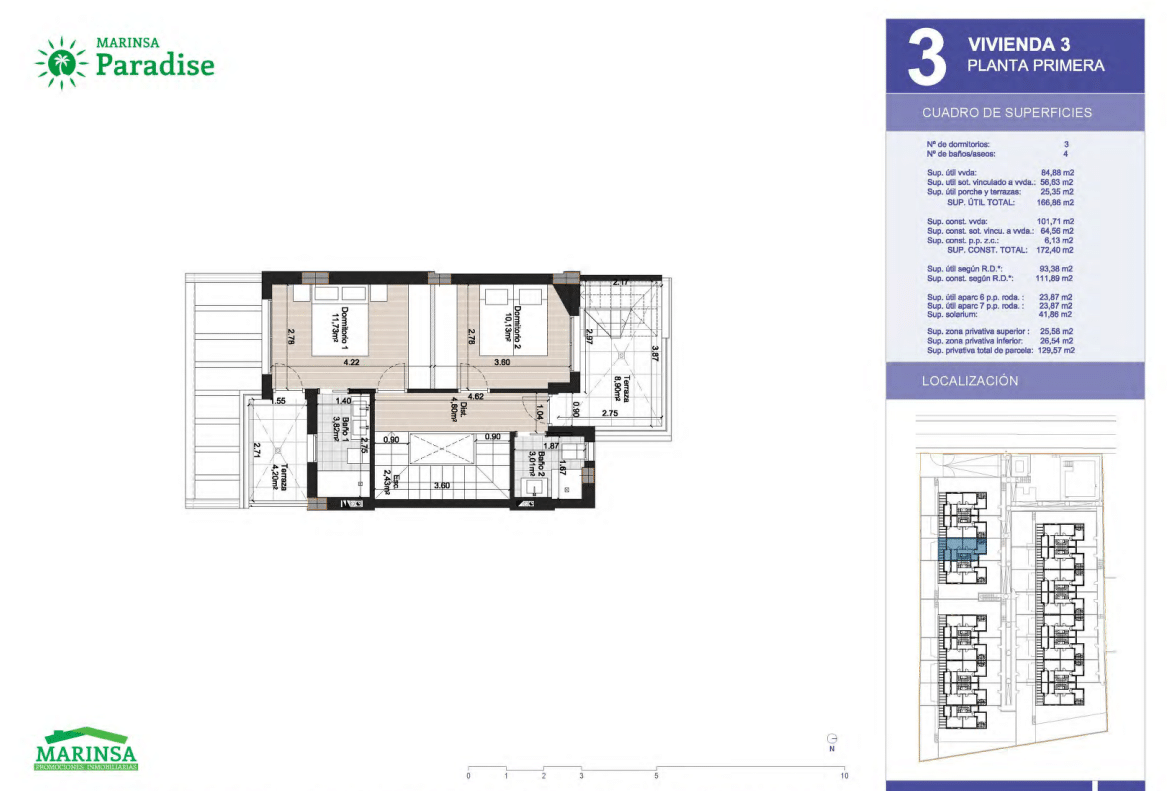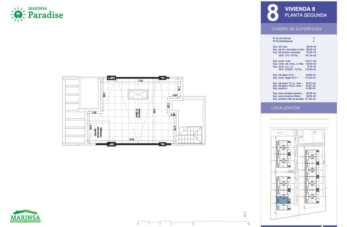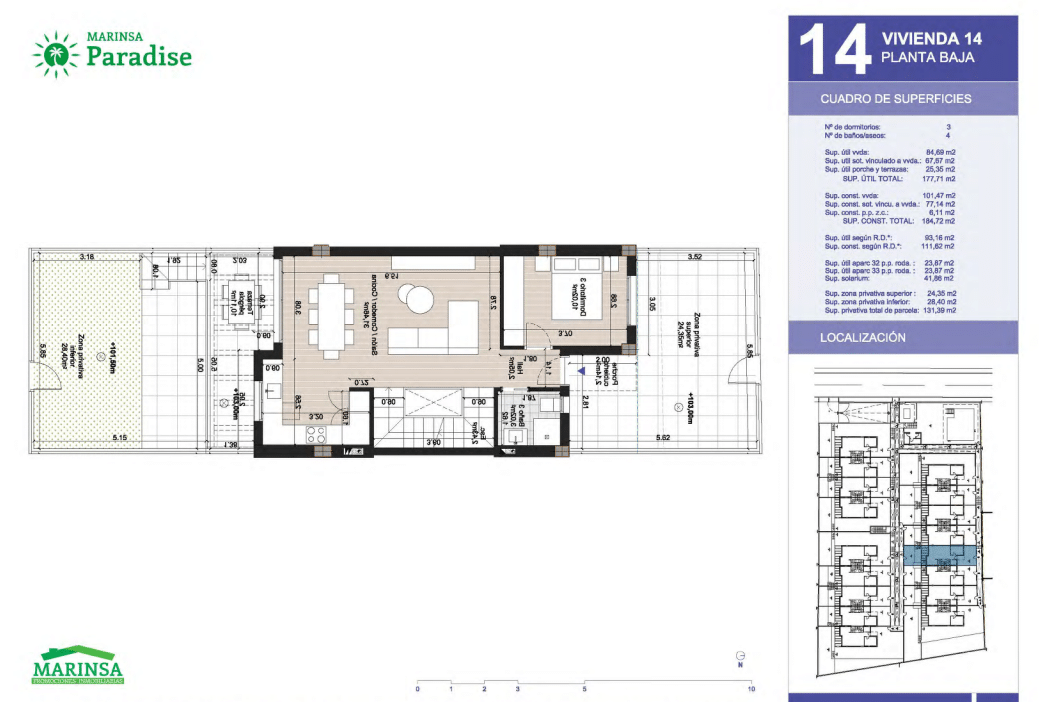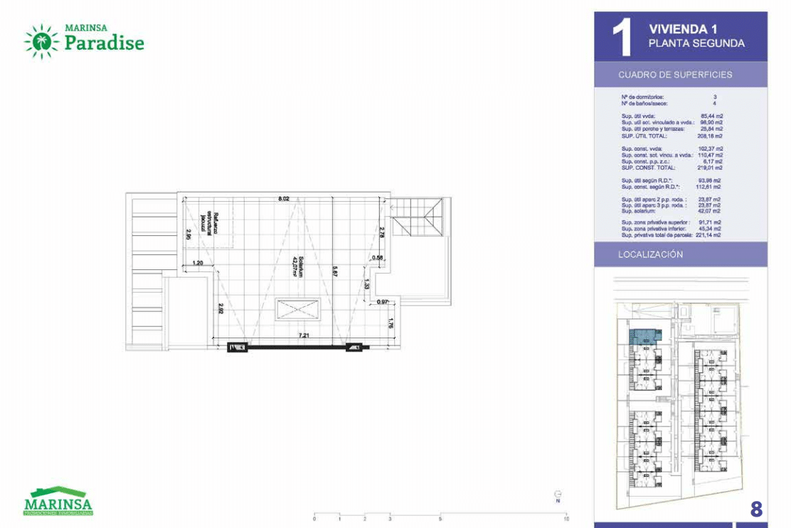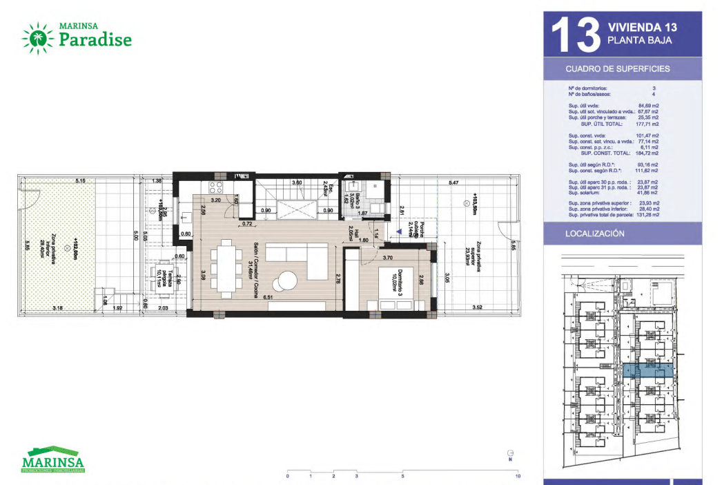 Marinsa Paradise on asuinkokonaisuus, joka koostuu kolmitasoisista asunnoista (alakerta, ensimmäinen ja toinen kerros), kellarikerroksesta sekä kattoterassista (solarium).