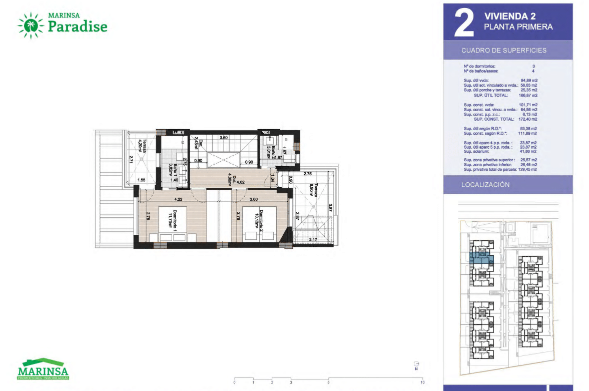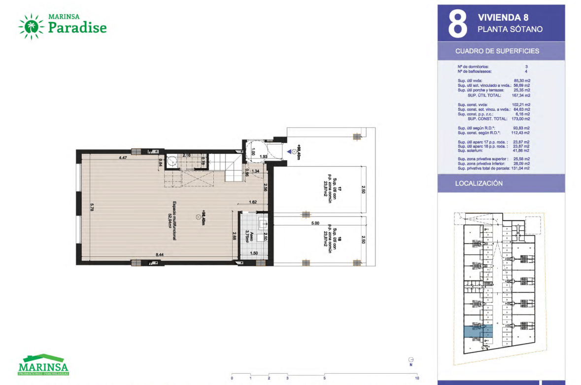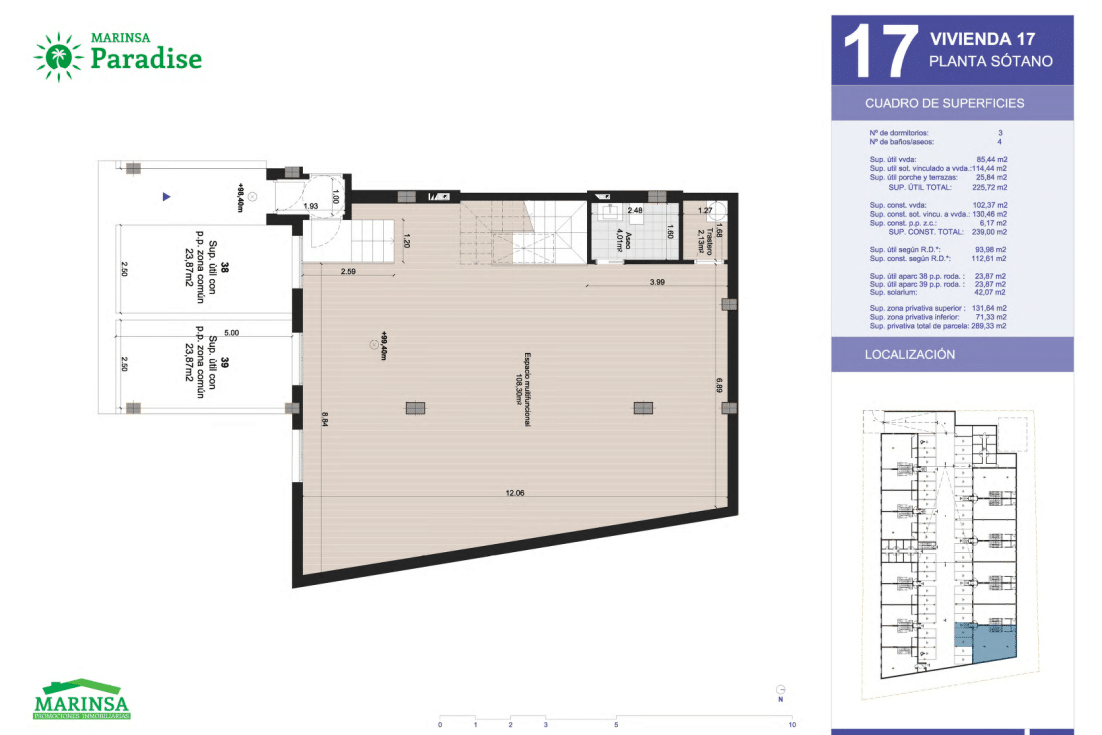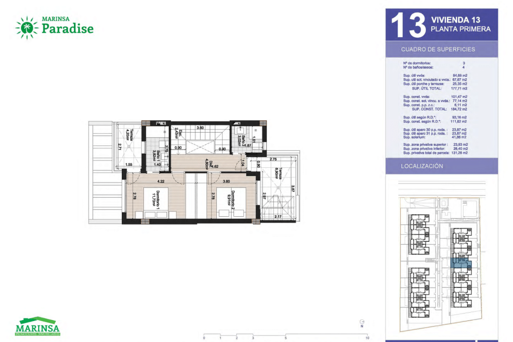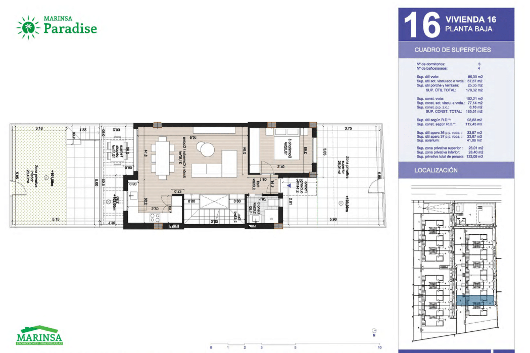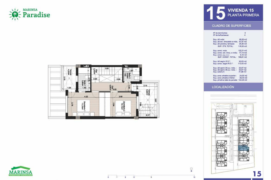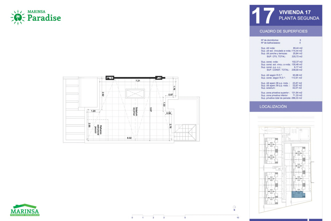 Marinsa Paradise on asuinkokonaisuus, joka koostuu kolmitasoisista asunnoista (alakerta, ensimmäinen ja toinen kerros), kellarikerroksesta sekä kattoterassista (solarium).