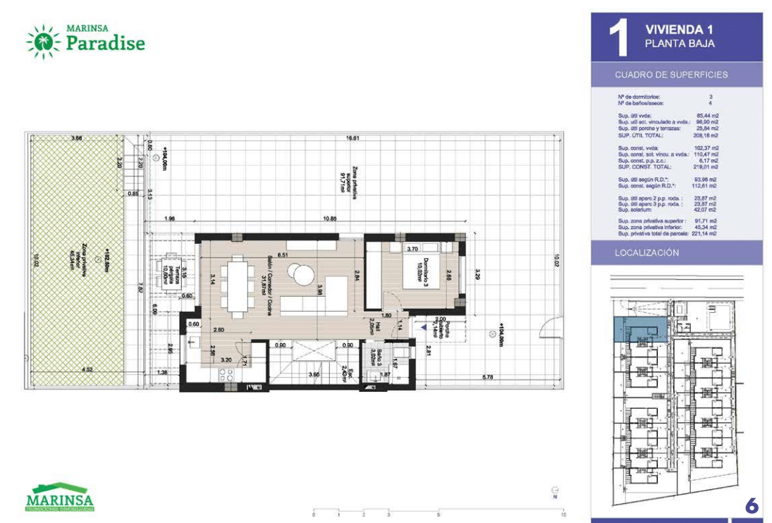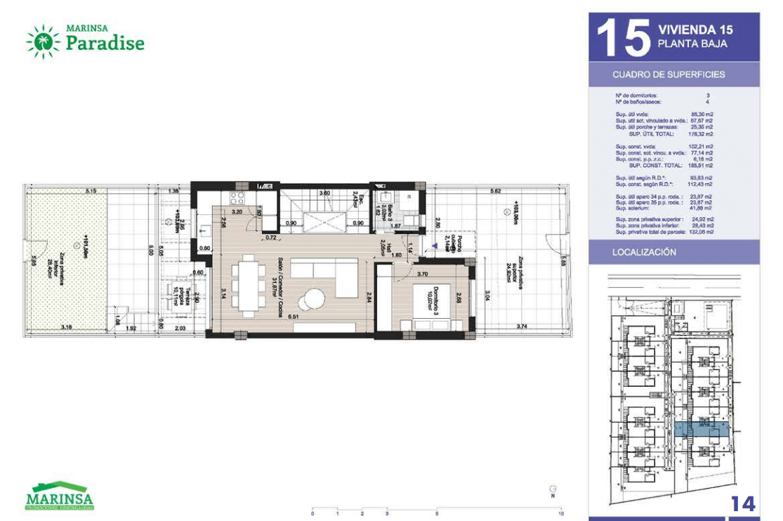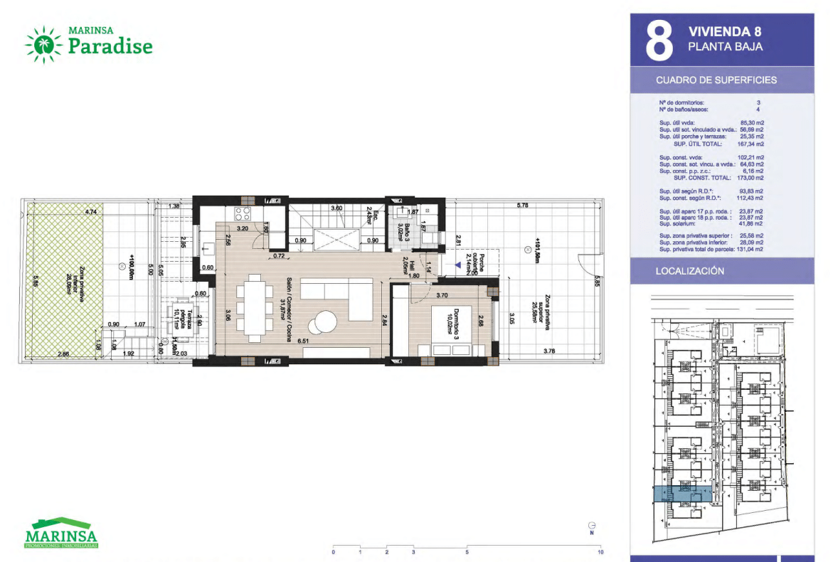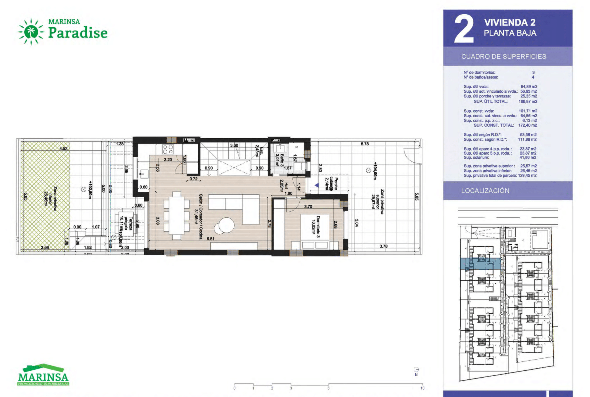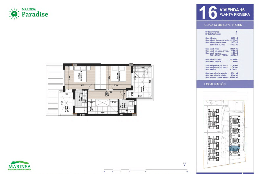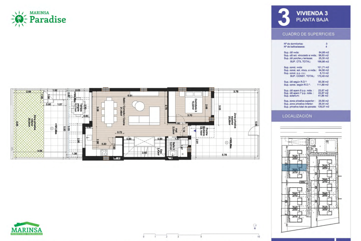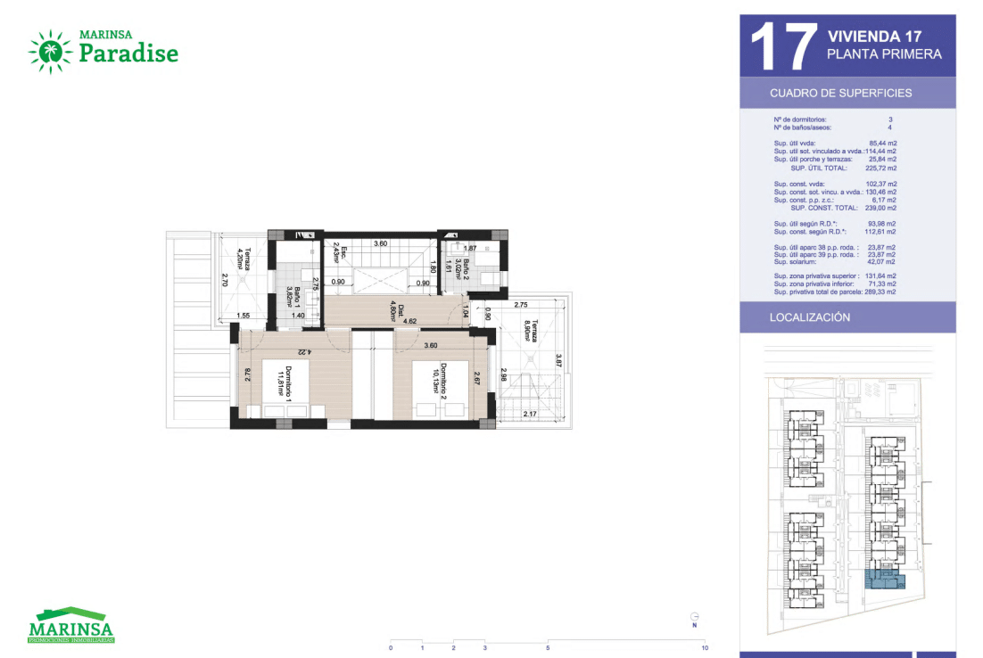 Marinsa Paradise on asuinkokonaisuus, joka koostuu kolmitasoisista asunnoista (alakerta, ensimmäinen ja toinen kerros), kellarikerroksesta sekä kattoterassista (solarium).